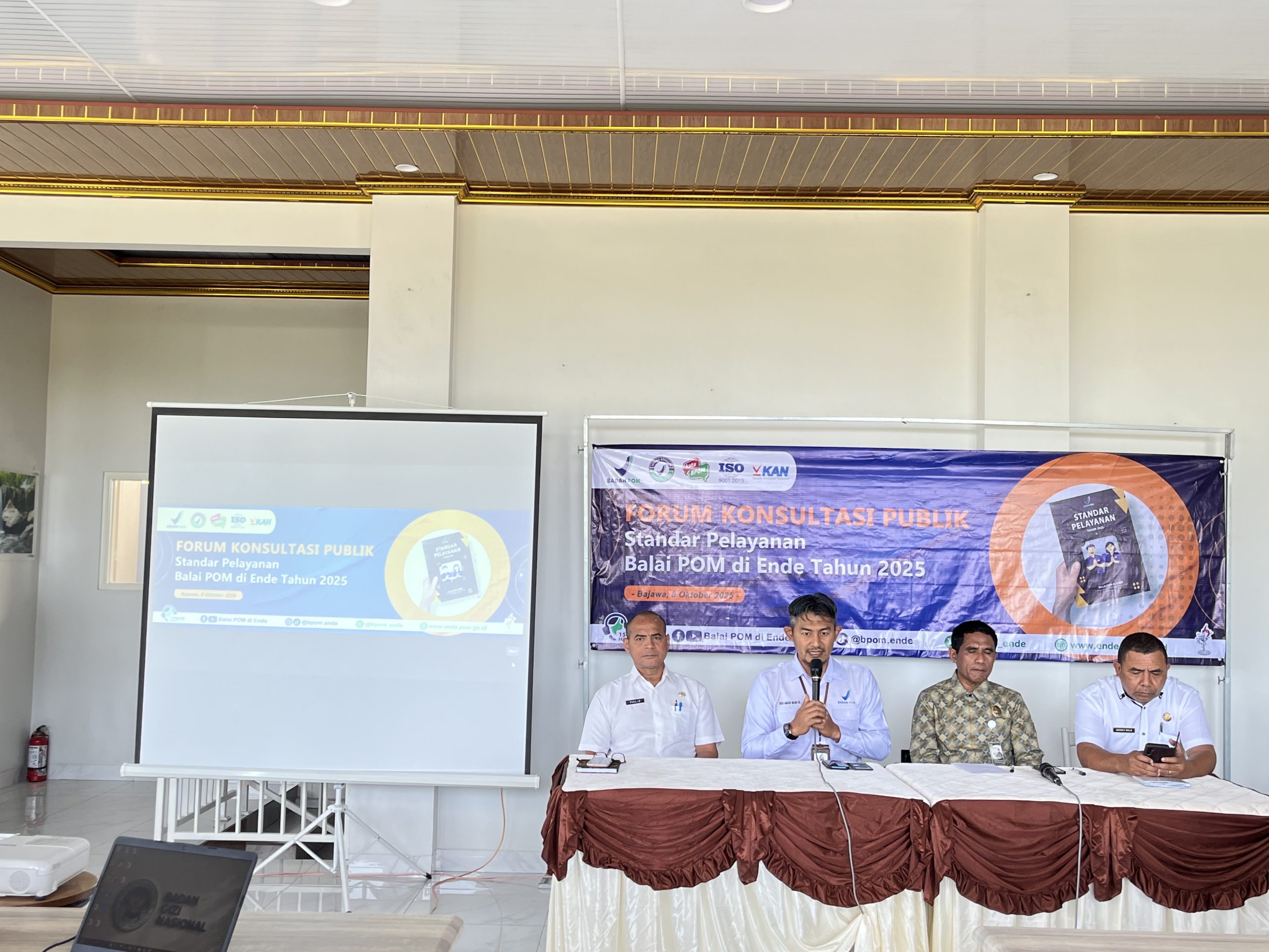 Balai Pengawas Obat dan Makanan (BPOM) Ende menggelar Forum Konsultasi Publik terkait Standar Pelayanan tahun 2025 yang berlangsung di Bajawa, Kabupaten Ngada, pada Rabu (8/10/2025).