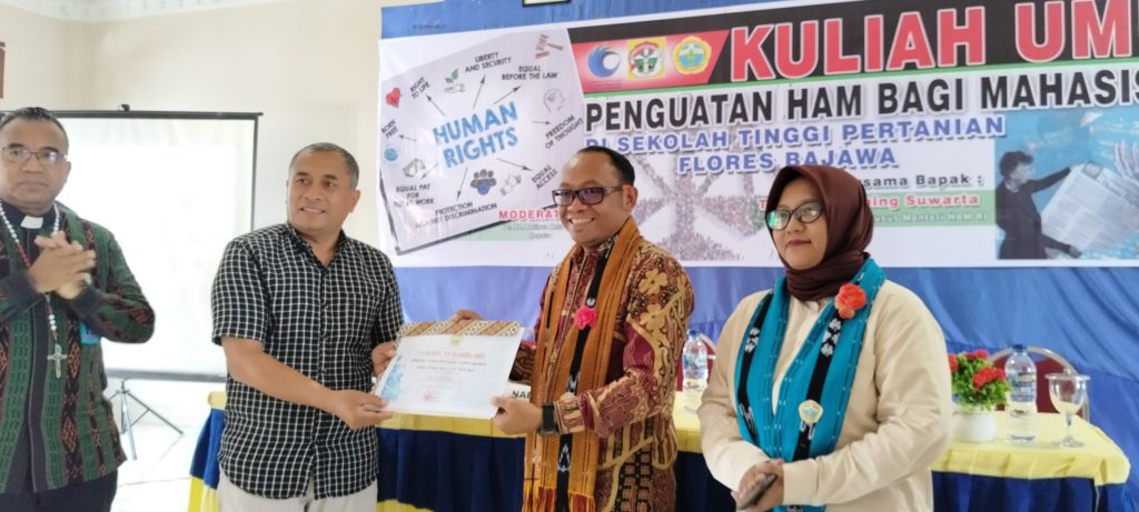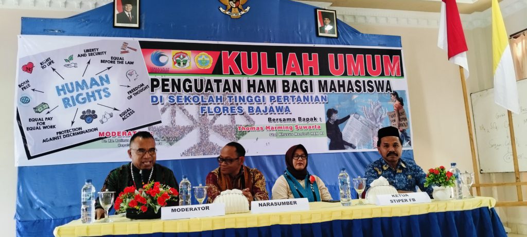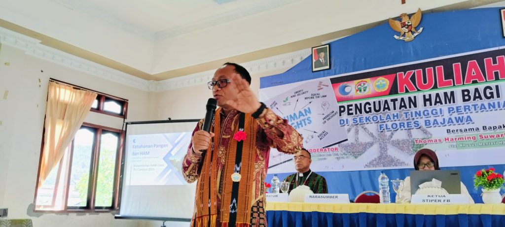 Kementerian Hak Asasi Manusia Republik Indonesia menggelar kegiatan “Kementerian HAM Goes to Campus 2025” di Sekolah Tinggi Pertanian Flores Bajawa (STIPER FB). Kegiatan berupa seminar penguatan HAM bagi mahasiswa ini berlangsung di Aula Kampus A STIPER FB, Jumat (17/10/2025), menghadirkan Staf Khusus Menteri HAM RI, Thomas Harming Suwarta, sebagai narasumber utama. Diskusi yang berlangsung hangat tersebut dimoderatori oleh Wakil Ketua 3, STIPER FB, Rofinus Neto Wuli.